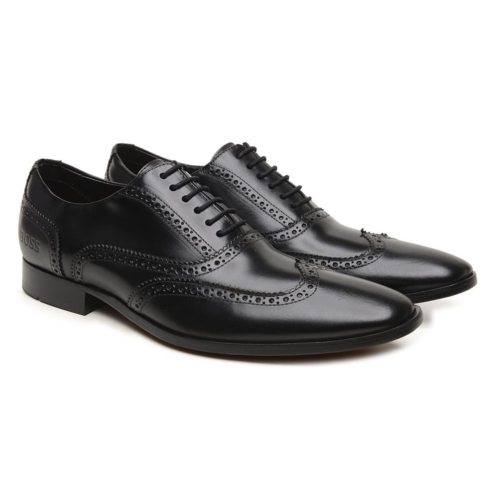 Sapatos Derby contemporâneos com sola em borracha, da BOSS. Forrado com pele cognac de assinatura, este par de sapatos é criado com pele tingida com substâncias naturais para mais personalidade. Os acabamentos de estilo antigo conferem mais interesse à parte superior destes sapatos.